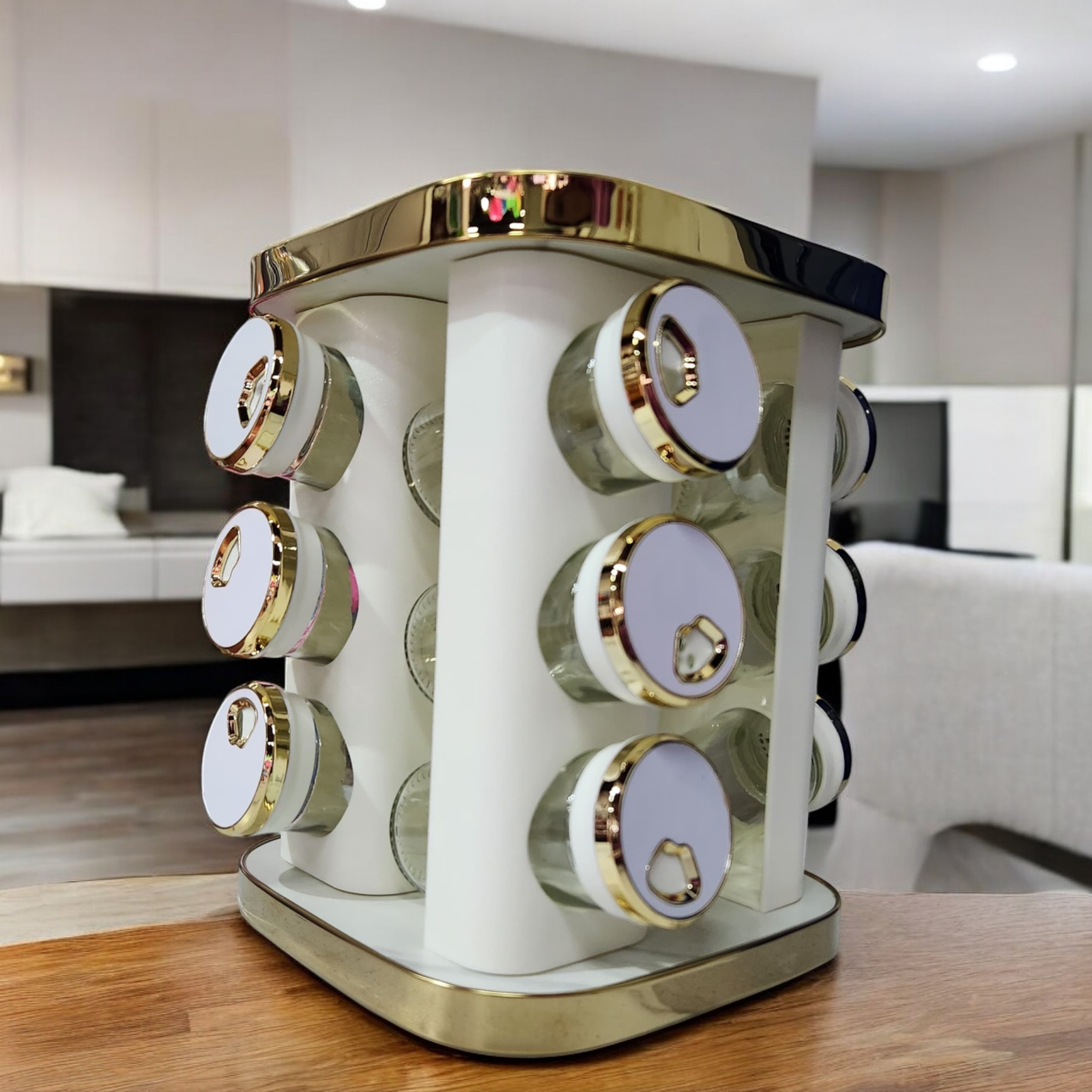 CONDIMENTERO PARA COCINA X12 UND BLANCO CON DORADO 90ML
