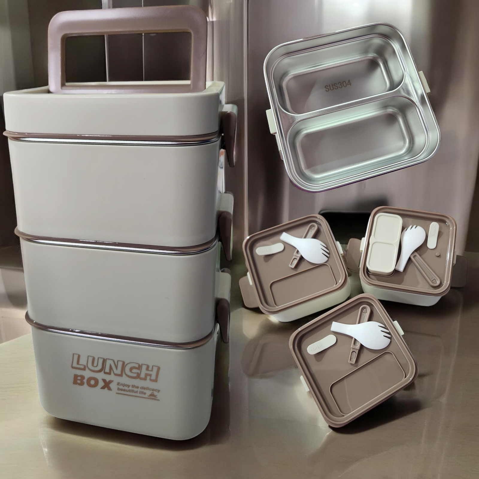 LONCHERA HERMETICA TRES COMPARTIMIENTOS CUADRADA 2000ML